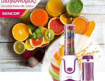 H Sencor διοργανώνει διαγωνισμό και σας δίνει τη δυνατότητα να κερδίσετε τη μηχανή παρασκευής smoothies SBL 22x με ισχύ 250W, με δύο δοχεία μεταφοράς ροφημάτων, λεπίδες από ανοξείδωτο ατσάλι και επίστρωση τιτανίου!