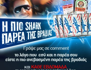 Το SHARK GREECE διοργανώνει το διαγωνισμό Η ΠΙΟ ΑΝΕΒΑΣΜΕΝΗ ΠΑΡΕΑ και δίνει τη δυνατότητα κάθε εβδομάδα σε ένα τυχερό να κερδίσει 1 μπουκάλι Stoli ή Jager + 6 κουτάκια SHARK στο club BOUTIQUE.