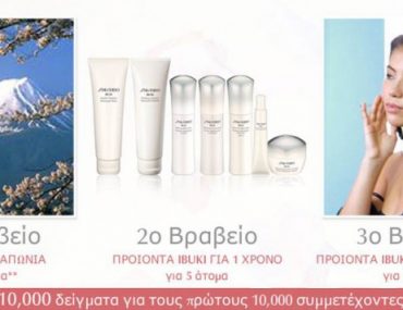 Η Shiseido Greece διοργανώνει διαγωνισμό και σας δίνει τη δυνατότητα να κερδίσετε ένα ταξίδι για 2 στην Ιαπωνία, 5 σετ προϊόντων Ibuki, 3 σετ μινι προϊόντων Ibuki και δείγματα δωρεάν.