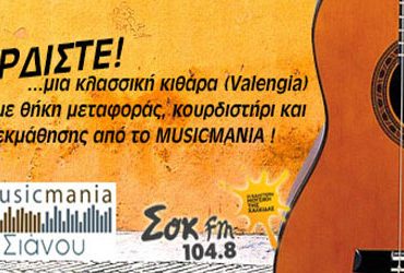 Το sokfm.gr διοργανώνει διαγωνισμό και σας δίνει τη δυνατότητα να κερδίσετε μια κλασική κιθάρα (VALENGIA), μαζί με τη θήκη μεταφοράς της, καθώς και κουρδιστήρι και DVD Εκμάθησης από το Musicmania (Αβάντων 74), θα γίνουν δικά σου, με τον πιο εύκολο τρόπο.