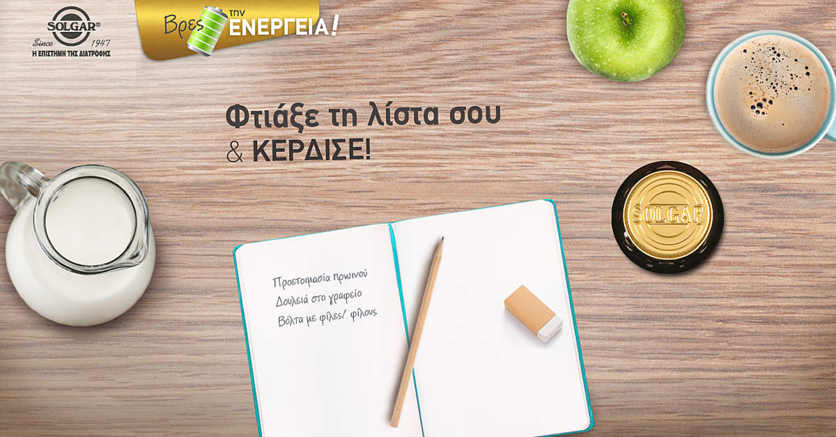 Η Solgar Greece διοργανώνει διαγωνισμό και δίνει τη σε 3 τυχερούς να κερδίσουν από 2 συσκευασίες συμπληρωμάτων διατροφής της επιλογής τους!