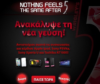 Η σελίδα 5 Gum Greece διοργανώνει διαγωνισμό και σας δίνει τη δυνατότητα να κερδίσετε ένα Sony Xperia U – Black+Pink Extra Cover, ένα Apple iPod Touch 8GB 4Gen και ένα Sony PSVita κονσόλα 1004 Black.