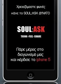 03-10-2012 Διαγωνισμός από το soulask.com με δώρο iPhone 5 Το soulask.com διοργανώνει διαγωνισμό και σας δίνει τη δυνατότητα να κερδίσετε ένα iPhone 5 Μαύρο 16GB. Περισσοτερα...