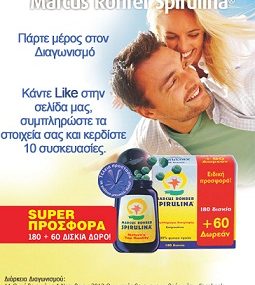 H σελίδα Spirulina Marcus Rohrer (Greece) διοργανώνει διαγωνισμό και σας δίνει τη δυνατότητα να κερδίσετε 10 συσκευασίες, 180 +60 δισκία Marcus Rohrer Σπιρουλίνα.