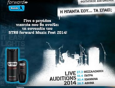 Ο διαγωνισμός του STR8 «STR8 Bands» σε προσκαλεί να δηλώσεις συμμετοχή με την μπάντα σου και να φτάσεις μέχρι τον τελικό της Θεσσαλονίκης και το STR8 forward Muzic Fest. Η νικητήρια μπάντα θα έχει την ευκαιρία να ανοίξει τη συναυλία του STR8 forward Muzic Fest, το καλοκαίρι, στην Τεχνόπολις, στο Γκάζι.