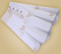 Κερδίστε μια λευκή βαμβακερή κλος φούστα με patchwork από γαλλική δαντέλα σε σχήμα πεταλούδας, κουμπιά από φίλντισι και εξωτερικές τσέπες από σαντούκ.