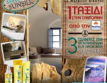 Η σελίδα 7 Hair Experts διοργανώνει διαγωνισμό και δίνει τη δυνατότητα σε 1 μεγάλο τυχερό να κερδίσει ένα ταξίδι στην Σαντορίνη, καθώς και μία τσάντα θαλάσσης που θα περιλαμβάνει 2 ολοκληρωμένες σειρές περιποίησης μαλλιών Sunsilk. Επίσης δίνει τη δυνατότητα σε 2 νικητές να κερδίσουν από μια τσάντα θαλάσσης ο καθένας, που θα περιλαμβάνει 2 ολοκληρωμένες σειρές περιποίησης μαλλιών Sunsilk.