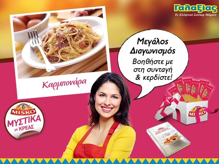 Τα supermaket ΓΑΛΑΞΙΑΣ διοργανώνoυν διαγωνισμό δίνουν τη δυνατότητα σε 5 τυχερούς να κερδίσουν τα ζυμαρικά της χρονιάς και σε ακόμη 20 από ένα βιβλίο συνταγών MISKO!