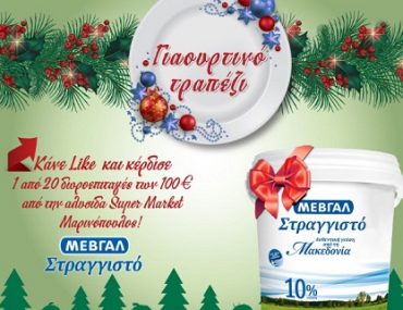 Ο διαγωνισμός του Στραγγιστού της ΜΕΒΓΑΛ «Γιαουρτινό Τραπέζι» σε προσκαλεί να παίξεις και να διεκδικήσεις δωροεπιταγή αξίας 100€ για τα Supermarket Μαρινόπουλος. 20 τυχεροί θα κερδίσουν δωροεπιταγή αξίας 100€ για τα Supermarket Μαρινόπουλος.