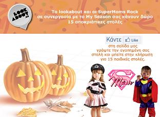 Σε λίγες μέρες ξεκινάει το τριώδιο. Γι΄αυτό το lookabout και οι SuperMoms Rock σε συνεργασία με το My Season διοργανώνουν διαγωνισμό και σας δίνουν τη δυνατότητα να κερδίσετε 15 αποκριάτικες παιδικές στολές.
