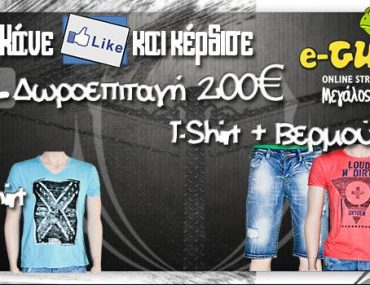To e-guana.gr διοργανώνει διαγωνισμό στο Facebook και προσφέρει σε 3 νικητές: μια δωροεπιταγη 200 ευρώ, ένα t-shirt και μια βερμούδα και ένα t-shirt.