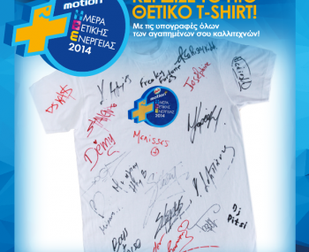 Κάνε LIKE & COMMENT με το πιο θετικό σου σχόλιο για την Ημέρα Θετικής Ενέργειας 2014 για να μπεις στην κλήρωση & να κερδίσεις ένα από τα 20 συλλεκτικά t-shirts με τις υπογραφές των αγαπημένων σου καλλιτεχνών!