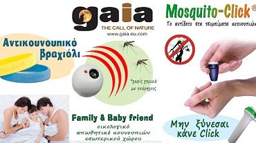 To Taλκ και η GAIA προσφέρουν σε 5 τυχερούς από ένα οικολογικό δώρο που θα τους βοηθήσει να περάσουν… ευκολότερα το καλοκαίρι τους. Πιο συγκερκιμένα, ένας τυχερός επισκέπτης της ιστοσελίδας μας θα κερδίσει μια οικολογική ηλεκτρονική συσκευή Family Friend, που καταπολεμάει τα κουνούπια μέσω υπερήχων, οι οποίοι δεν είναι αντιληπτοί από το ανθρώπινο αυτί, δυο τυχεροί θα κερδίσουν από ένα Mosquito Click – φυσικό αντίδοτο για τα τσιμπήματα και άλλοι δυο τυχεροί θα κερδίσουν από ένα σετ αντικουνουπικά βραχιόλια Mosquito Band.
