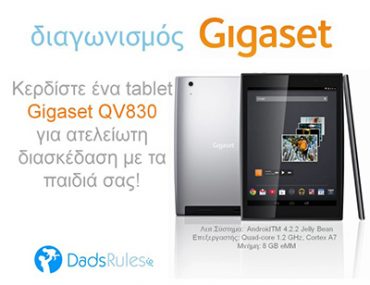 15-06-2014 Διαγωνισμός dadsrules.gr με δώρο ένα Tablet Gigaset QV830 Το dadsrules.gr διοργανώνει διαγωνισμό και σας δίνει τη δυνατότητα να κερδίσετε ένα Tablet Gigaset QV830! Περισσοτερα...