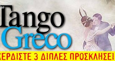 Το Ogdoo.gr εξασφάλισε για τους αναγνώστες του 3 διπλές προσκλήσεις για την παράσταση «Tango Greco» με τη Γλυκερία, το Χρήστο Θηβαίο, την Ελένη Βουδουράκη & τον Γιάννη Χριστόπουλο στο Θέατρο Badminton στις 18 Φεβρουαρίου 2013.