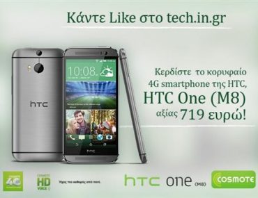 Η COSMOTE προσφέρει σε έναν τυχερό/-ρή επισκέπτη του tech.in.gr, το HTC One (M8), το κορυφαίο smartphone της HTC που αξιοποιεί το ταχύτερο δίκτυο κινητής τηλεφωνίας 4G που αναπτύσσει η εταιρεία με εντατικούς ρυθμούς ανά την Ελλάδα αλλά και το HD Voice για κλήσεις με κρυστάλλινο ήχο.