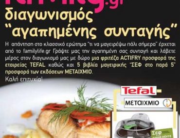 Το familylife.gr διοργανώνει διαγωνισμό και σας δίνει τη δυνατότητα να κερδίσετε 1 φριτέζα ACTIFRY της TEFAL και 5 βιβλία μαγειρικής “ΣΕΦ στο παρά 5” προσφορά των εκδόσεων ΜΕΤΑΙΧΜΙΟ.