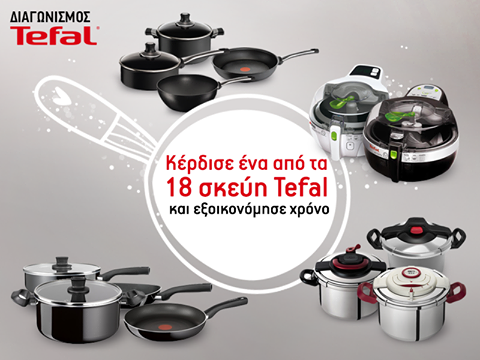 Η σελίδα Tefal Greece διοργανώνει διαγωνισμό και δίνει τη δυνατότητα σε 9 τυχερούς να κερδίσουν 18 σκεύη Tefal.