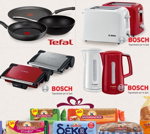 Ο Καραμολέγκος διοργανώνει διαγωνισμό και σας δίνει τη δυνατότητα να κερδίσετε 2 γκριλλιέρες- τοστιέρες, 2 φρυγανιέρες και 2 βραστήρες Bosch, 3 σετ τηγανιών Tefal και 10 καλάθια με προϊόντα!
