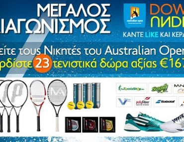 Το tennisnews.gr διοργανώνει διαγωνισμό και σας δίνει τη δυνατότητα να κερδίσετε 23 μοναδικά τενιστικά δώρα αξίας 1670 ευρώ! Βρείτε τους Νικητές του Αυστραλιανού Όπεν και μπείτε στην κλήρωση για να είστε εσείς ένας από τους 23 τυχερούς!