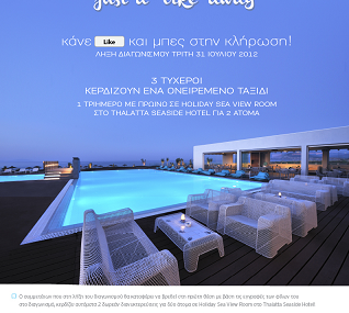Το Thalatta Seaside Hotel διοργανώνει διαγωνισμό και σας δίνει τη δυνατότητα να κερδίσετε 1 τριήμερο με πρωινό σε Holiday Sea View Room για 2 άτομα.