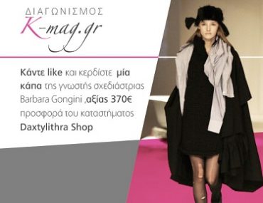 Το The K-Magazine διοργανώνει διαγωνισμό και σας δίνει τη δυνατότητα να κερδίσετε μία κάπα (100%μαλλί) της γνωστής σχεδιάστριας από τη Δανία, Barbara Gongini, αξίας 370,00 ευρώ, προσφορά του καταστήματος Daxtylithra Shop.