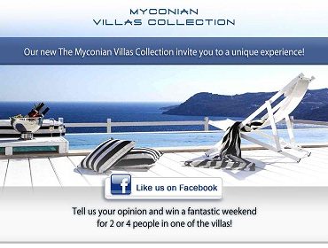 Τα The Myconian Villas Collection διοργανώνουν διαγωνισμό με δώρο ένα μαγευτικό τριήμερο για δύο ή τέσσερα άτομα σε μια από τις πολυτελέστατες βίλλες. Στο πακέτο περιλαμβάνονται 2 διανυκτερεύσεις, late check out και 1 γεύμα.