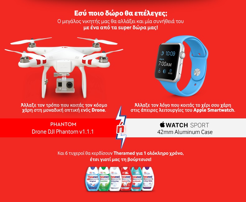 H Theramed Greece διοργανώνει διαγωνισμό και δίνει τη δυνατότητα σε 6 τυχερούς να κερδίσουν προϊόντα Theramed για ένα χρόνο και σε ένα τελικό νικητή να επιλέξει ανάμεσα σε δύο δώρα: ένα Apple Watch Sport ή ένα Drone Phantom DJ!