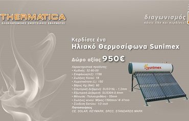 Η Εταιρία THERMATICA διοργανώνει διαγωνισμό και σας δίνει τη δυνατότητα να κερδίσετε ένα ηλιακό θερμοσίφωνα Sunimex αξίας 950€.