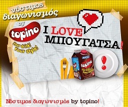 Το Topino διοργανώνει διαγωνισμό και δίνει τη δυνατότητα σε 5 τυχερούς να κερδίσουν μία μερίδα μπουγάτσα ή προϊόν σφολιάτας και ένα topino 450ml κάθε ημέρα και για 30 ημέρες, από το σημείο πώλησης μπουγάτσας που θα αναδειχθεί ως το δημοφιλέστερο μετά από την ψηφοφορία που θα διεξαχθεί στην σελίδα του topino στο facebook.