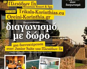 Η σελίδα Trikala Korinthias διοργανώνει διαγωνισμό και σας δίνει τη δυνατότητα να κερδίσετε μια διανυκτέρευση στη Junior Suite στο Πλειάδων Γη Spa Mountain Resort.