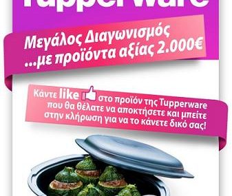 Η Tupperware Greece διοργανώνει διαγωνισμό στο facebook και δίνει τη δυνατότητα σε 25 τυχερές να κερδίσουν προϊόντα της επιλογής τους, συνολικής αξίας 2000€.