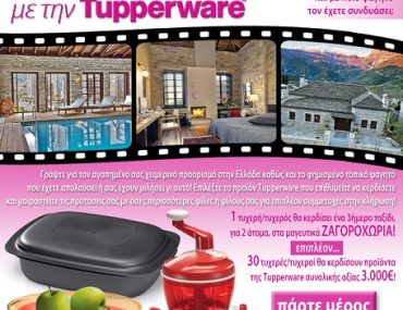 Η Tupperware Greece διοργανώνει διαγωνισμό και δίνει τη δυνατότητα σε 1 τυχερό να κερδίσει ένα τριήμερο στη μαγευτική Αράχωβα και σε 30 ακόμα τυχερούς να κερδίσουν προϊόντα αξίας 3.000€!