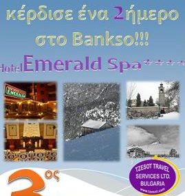 Το tzesot.com διοργανώνει διαγωνισμό και σας δίνει τη δυνατότητα να κερδίσετε ένα αξέχαστο 2ήμερο (03 – 04.12.2011) ταξίδι στο Μπάνσκο που περιλαμβάνει μία διανυκτέρευση στο ξενοδοχείο Εmerald Spa**** με πρωινό. στους πρόποδες του όρους Πιρίν.