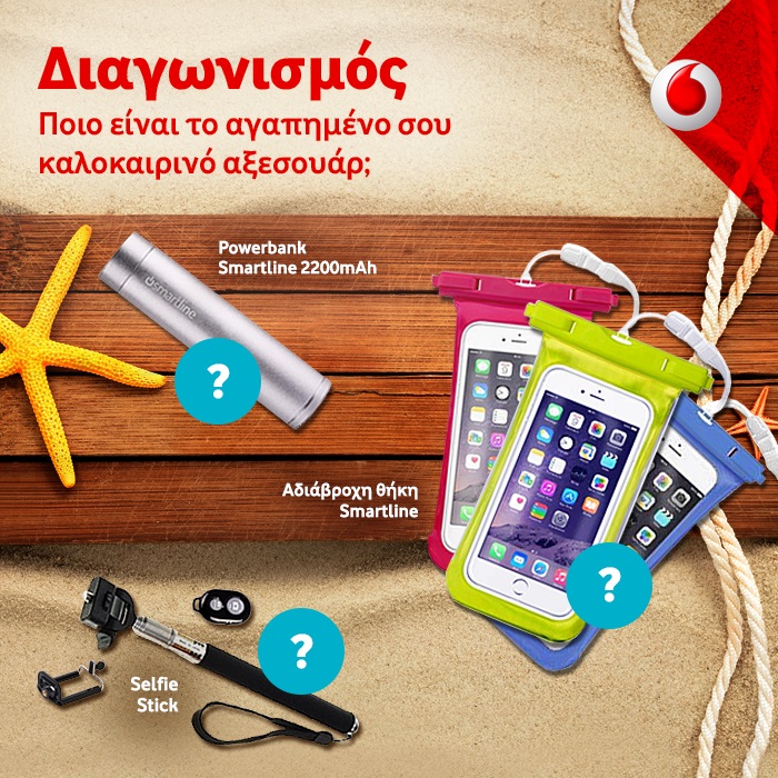 H Vodafone διοργανώνει διαγωνισμό και σας δίνει τη δυνατότητα να κερδίσετε PowerBank Smartline 2200mAh, Αδιάβροχη θήκη Smartlime και Selfie Stick!