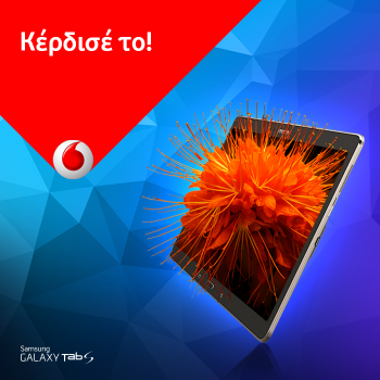 Η Vodafone Greece διοργανώνει διαγωνισμό και σας δίνει τη δυνατότητα να κερδίσετε το tablet Samsung Galaxy Tab S 8,4’ 4G, το μηνιαίο πάγιο της υπηρεσίας “hol double-play GR+300” σε 12μηνο συμβόλαιο για 12 μήνες (αν ο νικητής είναι νέος συνδρομητής της hellas online, τότε τα τέλη ενεργοποίησης & εγκατάστασης της γραμμής θα είναι δωρεάν) και το κινητό Samsung Galaxy Express II.