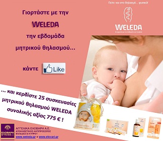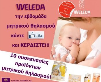 Με αφορμή την παγκόσμια εβδομάδα Πανελλαδικού Ταυτόχρονου θηλασμού η Weleda Greece σας κάνει δώρο 10 συσκευασίες προϊόντων μητρικού θηλασμού! Θα γίνουν 2 κληρώσεις και κάθε εβδομάδα 5 τυχερές μανούλες θα κερδίζουν 5 συσκευασίες !