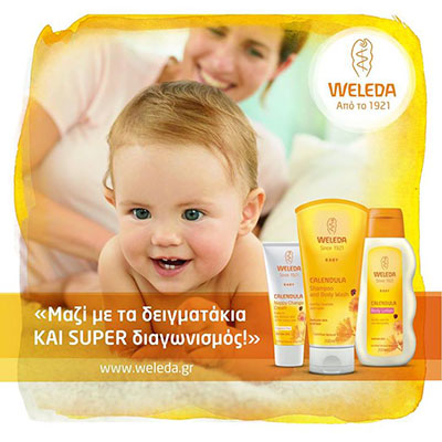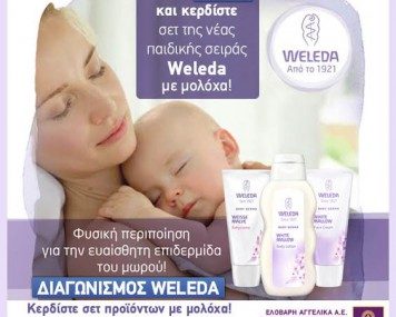 Η σελίδα Weleda Greece διοργανώνει διαγωνισμό και δίνει τη δυνατότητα σε κάθε εβδομάδα σε 2 τυχερές μανούλες να κερδίσουν 2 σετ περιποίησης με Μολόχα (κρέμα αλλαγής πάνας, γαλάκτωμα σώματος και κρέμα προσώπου).
