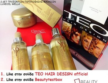 Το Beautytestbox σε συνεργασία με τον αγαπημένο του parthner Τeo Hair Design, προσφέρει σε 5 τυχερούς, 1) ολοκληρωμένο FULL SERVICE (ΧΡΩΜΑ – ΚΟΥΡΕΜΑ – ΧΤΕΝΙΣΜΑ – ΜΑΝΙΚΙΟΥΡ) 2) SET ΠΡΟΪΌΝΤΩΝ ΠΕΡΙΠΟΙΗΣΗΣ ΜΑΛΛΙΩΝ LUXEOIL Wella Professionals, αξίας 220€!