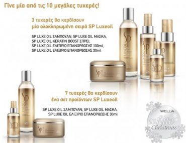Η Wella Professionals διοργανώνει διαγωνισμό και δίνει τη δυνατότητα σε 5 τυχερούς να κερδίσουν ένα πακέτο ομορφιάς για 2 άτομα σε συνεργαζόμενο με τη Wella κομμωτήριο (το πακέτο περιλαμβάνει κούρεμα, χτένισμα και βαφή μαλλιών για 2 άτομα) και στους επόμενους 200 τυχερούς να κερδίσουν 1 SP Luxe Oil και ένα σαμπουάν Keratin Protect.