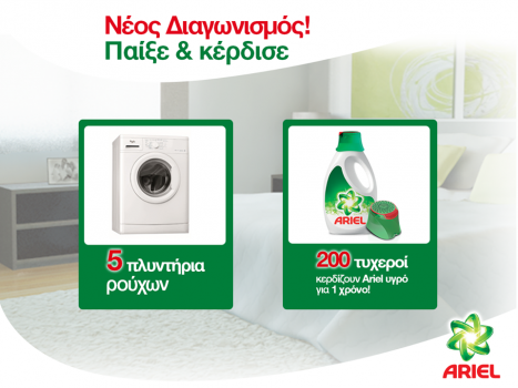 Η σελίδα Επιθυμίες διοργανώνει διαγωνισμό και δίνει τη δυνατότητα σε 5 τυχερούς να κερδίσουν από ένα πλυντήριο ρούχων Whirlpool AWO/D61020 6 κιλών, ενεργειακής κλάσης Α++ και σε 200 ακόμα να κερδίσουν το νέο Ariel υγρό.