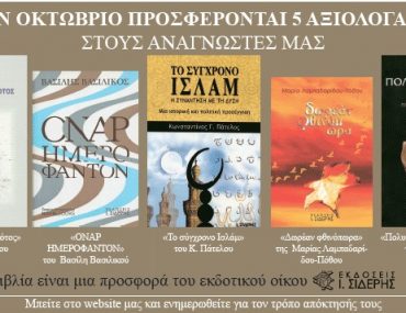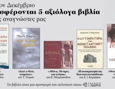 Η «Zeronews» στηρίζοντας τον πολιτισμό και δη τον έντυπο λόγο, προσφέρει κάθε μήνα πέντε αξιόλογα βιβλία. Για τον μήνα Δεκέμβριο οι αναγνώστες μας μπορούν να διεκδικήσουν τα εξής βιβλία, τα οποία είναι μια προσφορά του εκδοτικού οίκου Ι.ΣΙΔΕΡΗΣ: